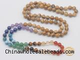 | Catalog » Finished Jewelry » Gemstone Jewelry » Hand-Knotted Mala Necklaces » Chakra 108 Mala Necklaces » 7 Chakra beads with charm » GMN6025 |