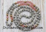 GMN6447 Hand-knotted 8mm, 10mm dalmatian jasper & cherry quartz 108 beads mala necklaces